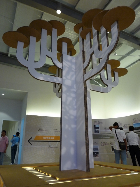 桃園航空城願景館於103年8月1日開展,本公司參與佈展部分也於7月31日晚上9點完工,主要亮點是一顆高過4公尺的蜂巢紙板組合立體大樹,4米樹幹幾乎無縫接合,宛如旱地拔蔥,並保留蜂巢紙板特有的材質結構外觀,結合力與美,有興趣的朋友可以去參觀參觀,讚!